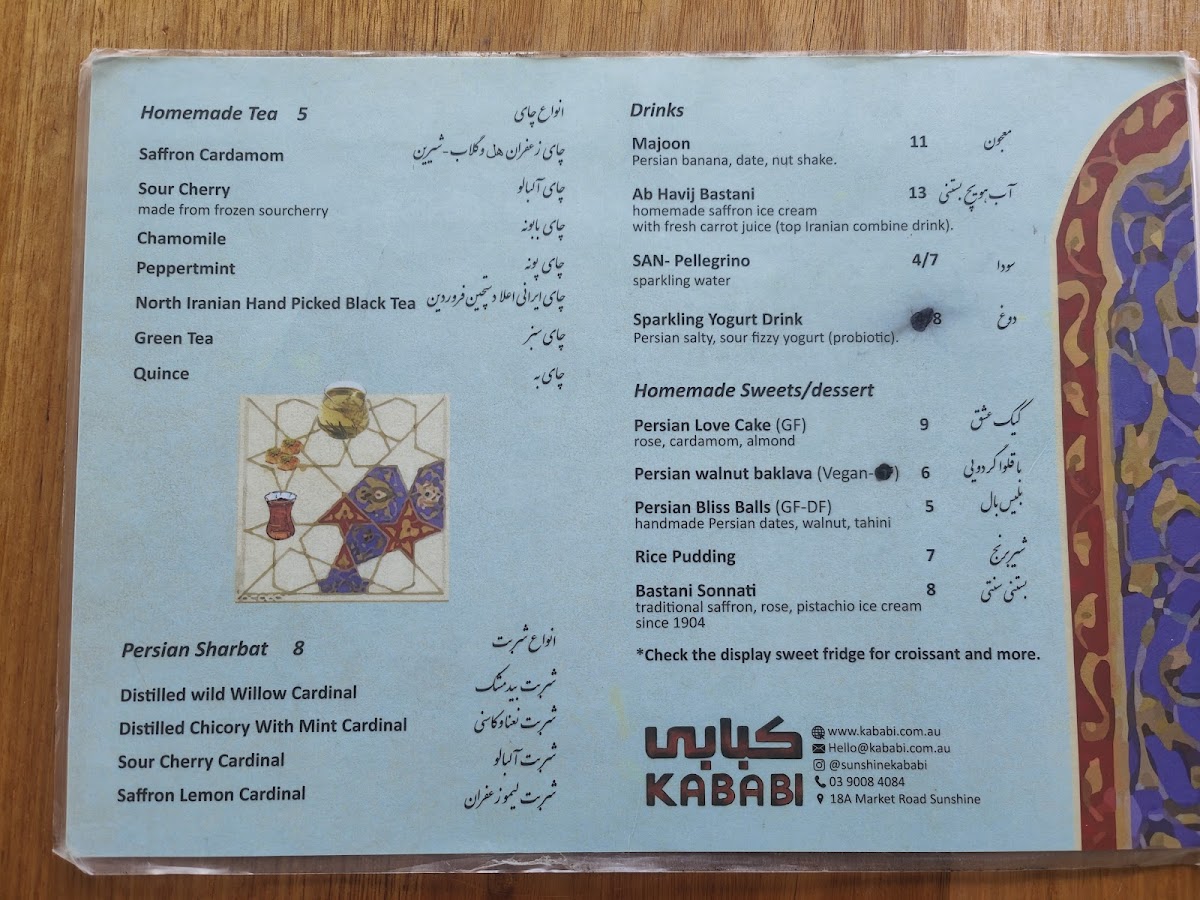 Welcome to KABABI, a charming café located at 18A Market Rd, Sunshine, VIC 3020, where Persian culinary traditions come alive. The menu boasts a delightful array of dishes that highlight the rich flavors of Persian cuisine.