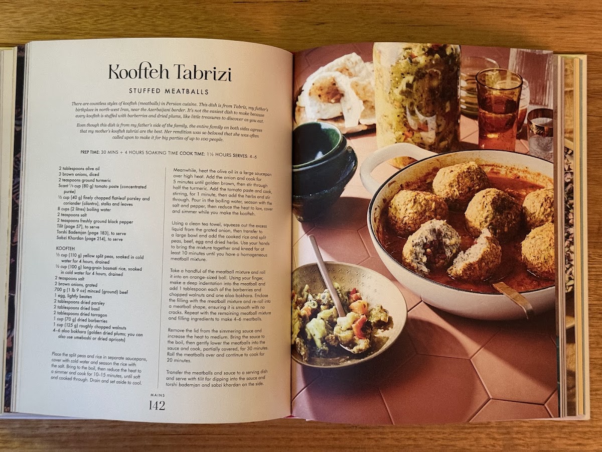 Slow cooked lamb in tomato, Persian dried lime and yellow split peas sauce with smoky char eggplant and crunchy potatoes and serve with Zereshk Polow and Shirazi Salad